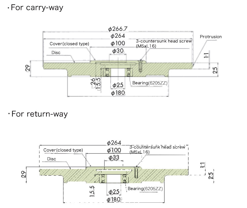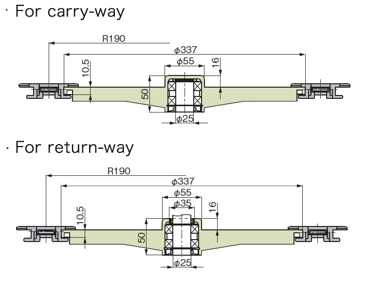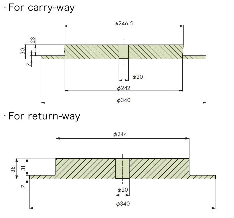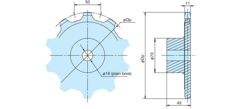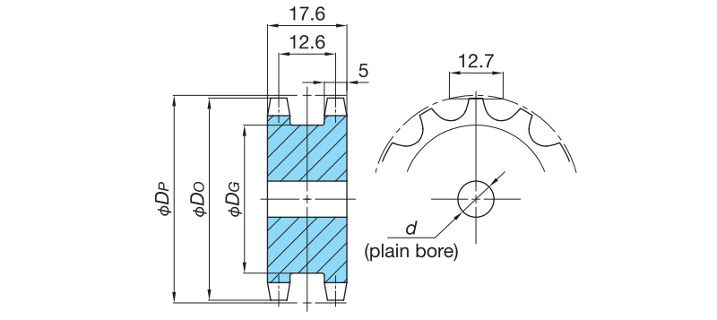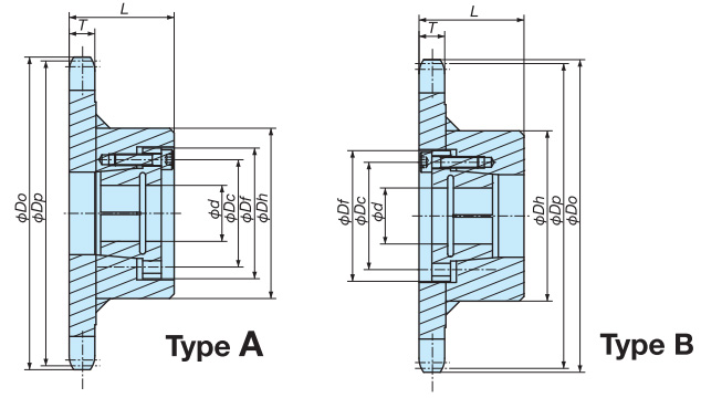 उपरोक्त तालिका में दर्शाए गए दांतों की संख्या से अधिक दांतों का उपयोग आरएस बी-प्रकार के स्प्रोकेट के साथ किया जा सकता है। यही बात स्टेनलेस स्टील के विनिर्देशों पर भी लागू होती है।