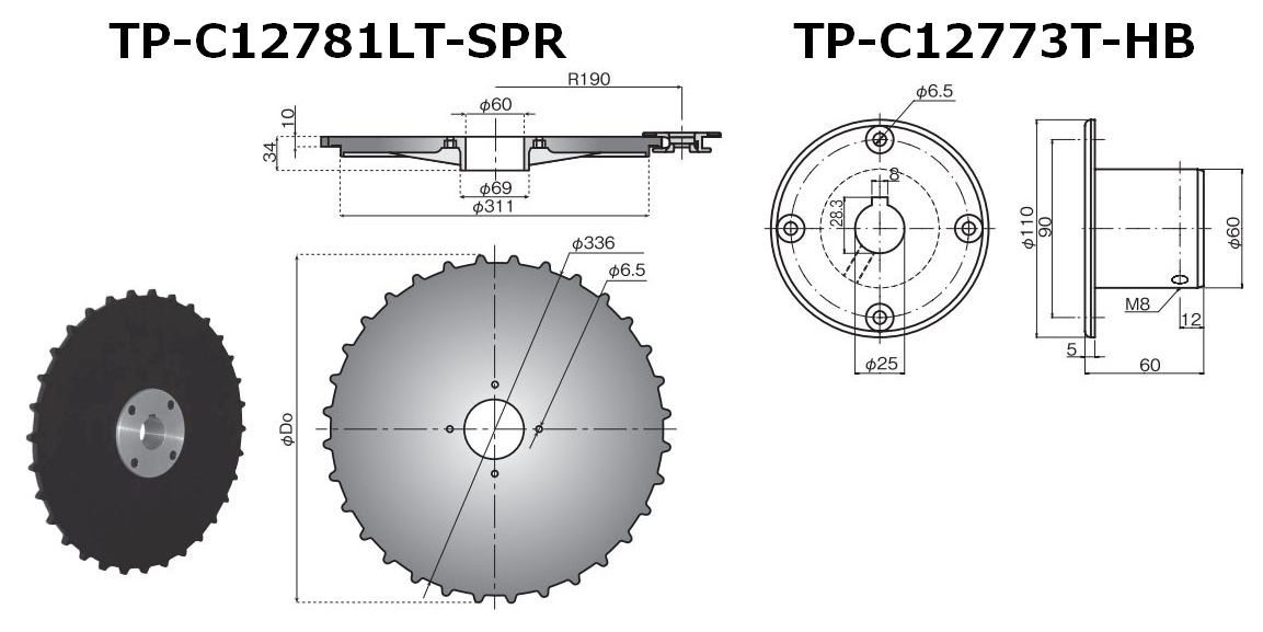 उपरोक्त तालिका में दर्शाए गए दांतों की संख्या से अधिक दांतों का उपयोग आरएस बी-प्रकार के स्प्रोकेट के साथ किया जा सकता है। RT600 मॉडल का उपयोग RS स्प्रोकेट B टाइप 12T या उससे बड़े के साथ किया जा सकता है। यही बात स्टेनलेस स्टील के विनिर्देशों पर भी लागू होती है।
