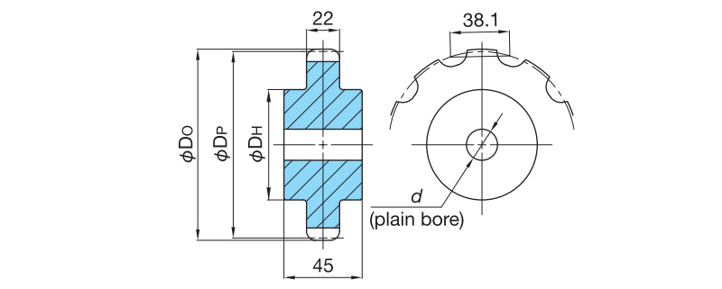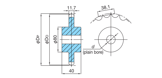 स्टील स्प्रोकेट (पायलट बोर प्रकार)शाफ्ट छेद प्रसंस्करण सेवा उपलब्ध है