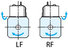 माउंटिंग सतह और इनपुट/आउटपुट शाफ्ट के बीच संबंध को इंगित करता है।