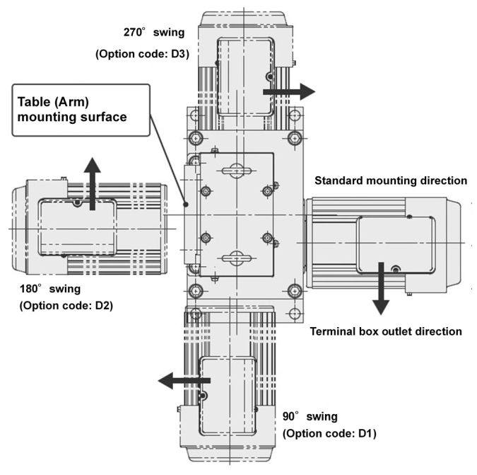 मानक मोटर माउंटिंग दिशा | D1: 90 डिग्री स्विंग | ||||||||||