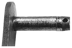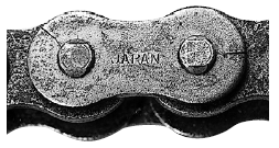 | कारण 2 | जब भार अधिक होता है और स्नेहन अपर्याप्त होता है, तो पिन और बुशिंग के बीच एक असामान्य घर्षण बल उत्पन्न होता है, जिससे पिन तुरंत घूम सकता है। यदि इस स्थिति में चेन का संचालन किया जाए, तो पिन बाहर आ जाएगी और रोलर चेन नष्ट हो जाएगी। | समाधान | तुरंत नया पिन लगाएँ। पिन को वेल्ड न करें और न ही पुराने पिन का दोबारा इस्तेमाल करें। (पुराने रोलर चेन को फेंक दें ताकि गलती से उसका दोबारा इस्तेमाल न हो जाए।) इसके अलावा, अगर पिन का सिरा या प्लेट वाला हिस्सा घिसा हुआ हो, तो उसकी स्थापना की स्थिति की जाँच करें। |