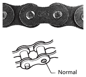 | 4 | चेन प्लेटों के अंदर और स्प्रोकेट दांतों के किनारों पर घिसाव |